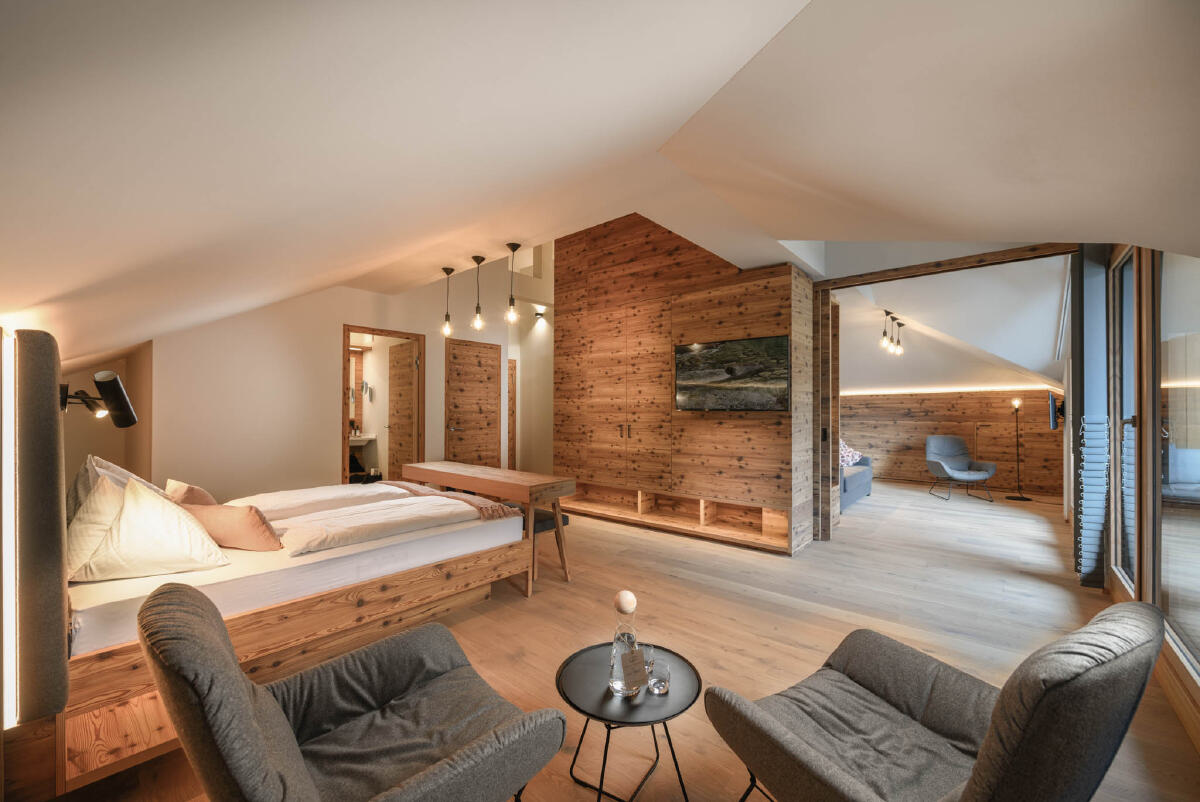 Von der geräumigen 50m²-Suite über Familienzimmer bis hin zu Doppelzimmern mit speziellem Motto – unsere MitarbeiterInnen des Hotels Bergzeit bereiten jedes Zimmer bis ins Detail für Sie vor, um Ihnen das Wie-Zuhause-Gefühl für den besonderen Urlaub zu garantieren. Dank warmem Design mit viel Holz und Bezug zur Natur laden Sie allein durch den Aufenthalt in unseren Suiten oder Komfortzimmern bereits Ihre Kräfte auf.